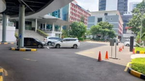 Masih di lokasi yang sama, pada Selasa 2 September 2025, area parkir di sisi selatan gedung Kementerian BUMN nampak lengang. Hanya terlihat beberapa kendaraan roda empat yang parkir.